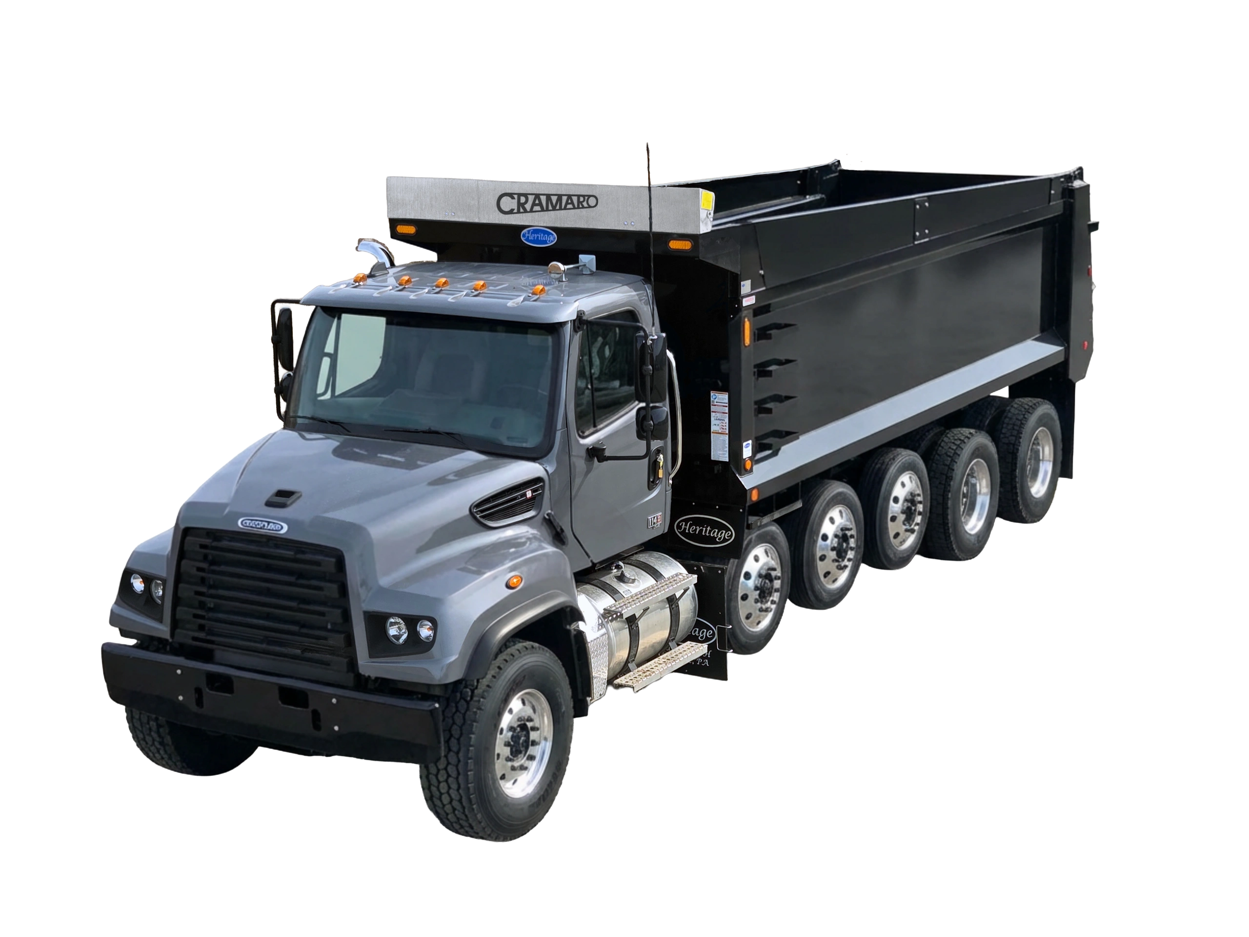 The Cramaro Slide N Go™ truck and trailer tarp system is designed for hauling sand, dirt, gravel, asphalt, and more. It covers and uncovers in seconds with a ground-level, chain-driven crank or optional electric drive, and can be installed on dump bodies, end dumps, belly dumps, or roll-off cans.